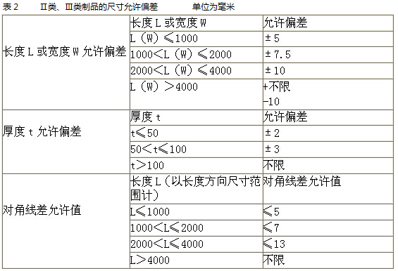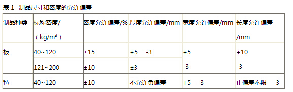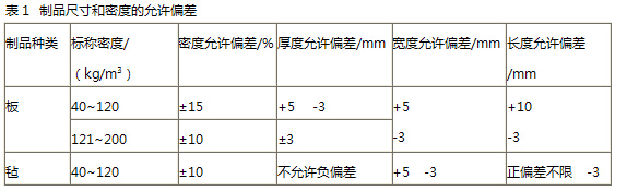 制品尺寸和密度,應(yīng)符合表1的規(guī)定。