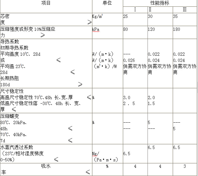 制品的導(dǎo)熱系數(shù)及熱陰應(yīng)符合表1的規(guī)定。其他規(guī)格的導(dǎo)熱系數(shù)指標(biāo)按標(biāo)稱密度以內(nèi)差法確定,熱阻值不得低于標(biāo)稱值的95%。