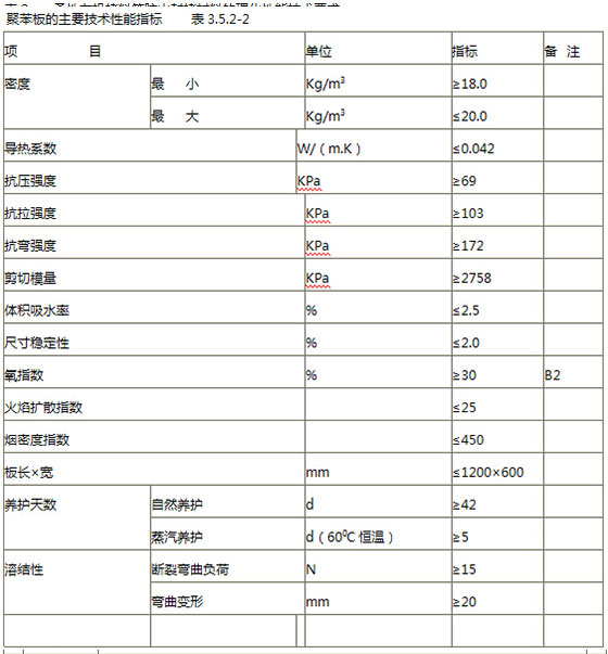 聚苯板的主要技術(shù)性能指標(biāo) 表3.5.2-2項(xiàng)
