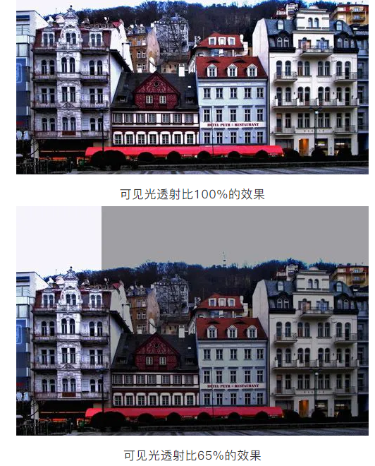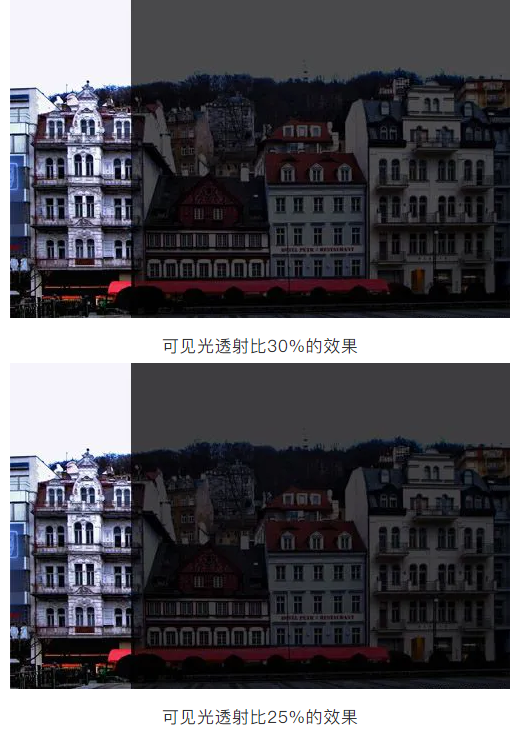 但是,我們對(duì)其中的部分產(chǎn)品配置感覺(jué)不合理,比如鋁合金窗參數(shù)表里,大多數(shù)的整窗的傳熱系數(shù)是達(dá)到了1.1,但是其玻璃可見(jiàn)光透射比都在0.33左右,最差的是0.27??梢?jiàn)光透射比這樣差的產(chǎn)品能用嗎?有些朋友對(duì)可見(jiàn)光透射比沒(méi)有概念,下面我們放幾張照片供大家看一下: