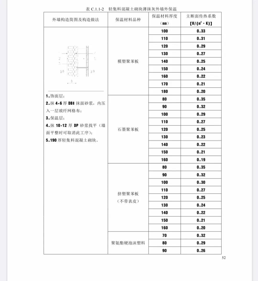 這些表格推薦了各種保溫材料應(yīng)用的厚度,你可以看到聚苯板、石墨聚苯板、擠塑聚苯板、聚氨酯泡沫、酚醛板、巖棉等各種材料都有應(yīng)用的機(jī)會(huì)。這跟前兩天上海出臺(tái)的保溫限制征求意見(jiàn)稿(上海將大多數(shù)外保溫技術(shù)全部限用)真是不一樣的天地。廣大保溫企業(yè)在北方還是有很大的生存空間的。