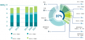 建筑行業(yè)碳排放背景1.從國際上來看,建筑行業(yè)的碳排放占比超過三分之一根據(jù)《2022年全球建筑和建造業(yè)狀況報(bào)告》,2021年建筑物運(yùn)營所產(chǎn)生的二氧化碳排放量達(dá)到了歷史最高水平,約100億噸二氧化碳,比2020年增加了大約5%,比2019年出
