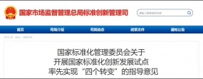 導(dǎo)讀日前,《國家標(biāo)準(zhǔn)化管理委員會關(guān)于開展國家標(biāo)準(zhǔn)化創(chuàng)新發(fā)展試點率先實現(xiàn)“四個轉(zhuǎn)變”的指導(dǎo)意見》正式發(fā)布。具體內(nèi)容如下:各省、自治區(qū)、直轄市市場監(jiān)管局(廳、委):為貫徹落實《國家標(biāo)準(zhǔn)化發(fā)展綱要》(以下簡稱《綱要》),持續(xù)深化標(biāo)準(zhǔn)