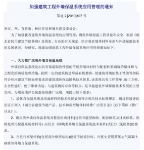 各區(qū)建設(shè)局,各建設(shè)、設(shè)計、施工、監(jiān)理、施工圖設(shè)計文件審查機構(gòu),各有關(guān)單位:為進(jìn)一步加強民用建筑工程外墻保溫系統(tǒng)應(yīng)用管理,確保外墻保溫工程質(zhì)量,根據(jù)《建設(shè)工程質(zhì)量管理條例》、《民用建筑節(jié)能條例》及相關(guān)標(biāo)準(zhǔn)規(guī)范,結(jié)合我市建筑節(jié)能和外墻保溫技術(shù)發(fā)