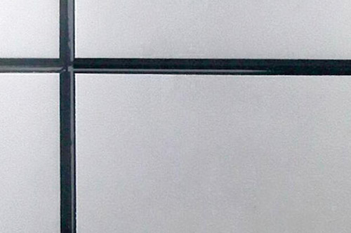 在粉刷達(dá)標(biāo)后的墻面上批刮配套找平粗膠粉三遍,貼網(wǎng)格布一遍(間隔8小時(shí)以上)——彈線分格(橫豎垂直)——批刮配套找平細(xì)膠粉二遍(間隔24小時(shí))——用240砂紙打磨——滾涂配套抗堿封閉底漆一遍(間隔4小時(shí))——刮涂光面膩?zhàn)右槐椤獓娡颗涮姿越饘俜加猩灼岫?間隔24小時(shí))——打磨一—噴涂配套水性金屬氯碳面漆二遍(間隔24小時(shí))——噴涂配套水性金屬氪碳罩光面漆一遍——貼紙膠帶——刷黑色線條漆一遍。